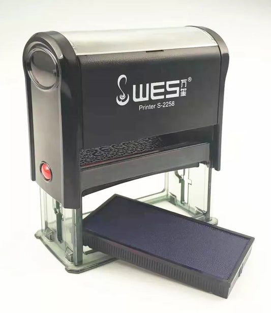 Wes Self Inking Stamp 60mm x 40mm customised for Business Office School Home and Personal Use